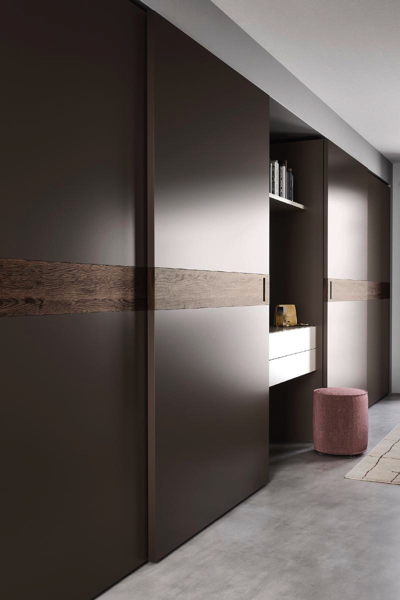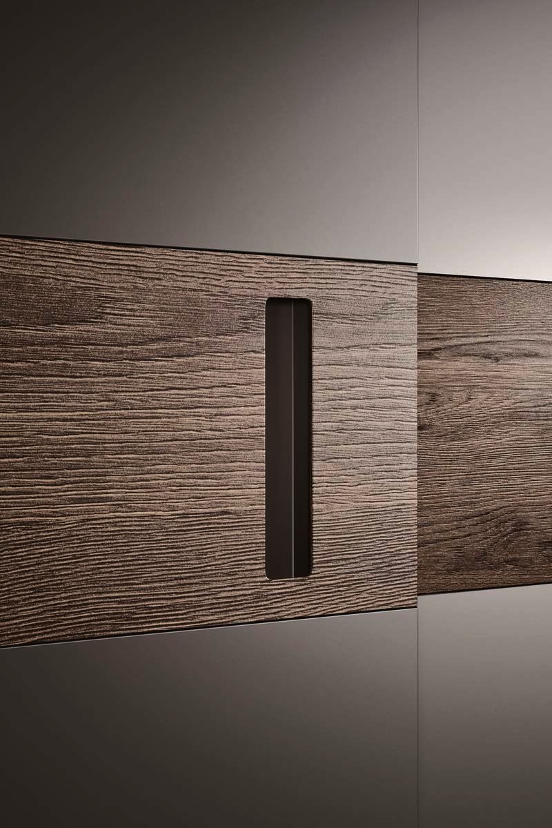 L’armadio scorrevole Class NOVAMOBILI è caratterizzato da una presa scavata nell’inserto in legno massello, un dettaglio di autentico pregio artigianale, con un tocco di naturale calore in più.