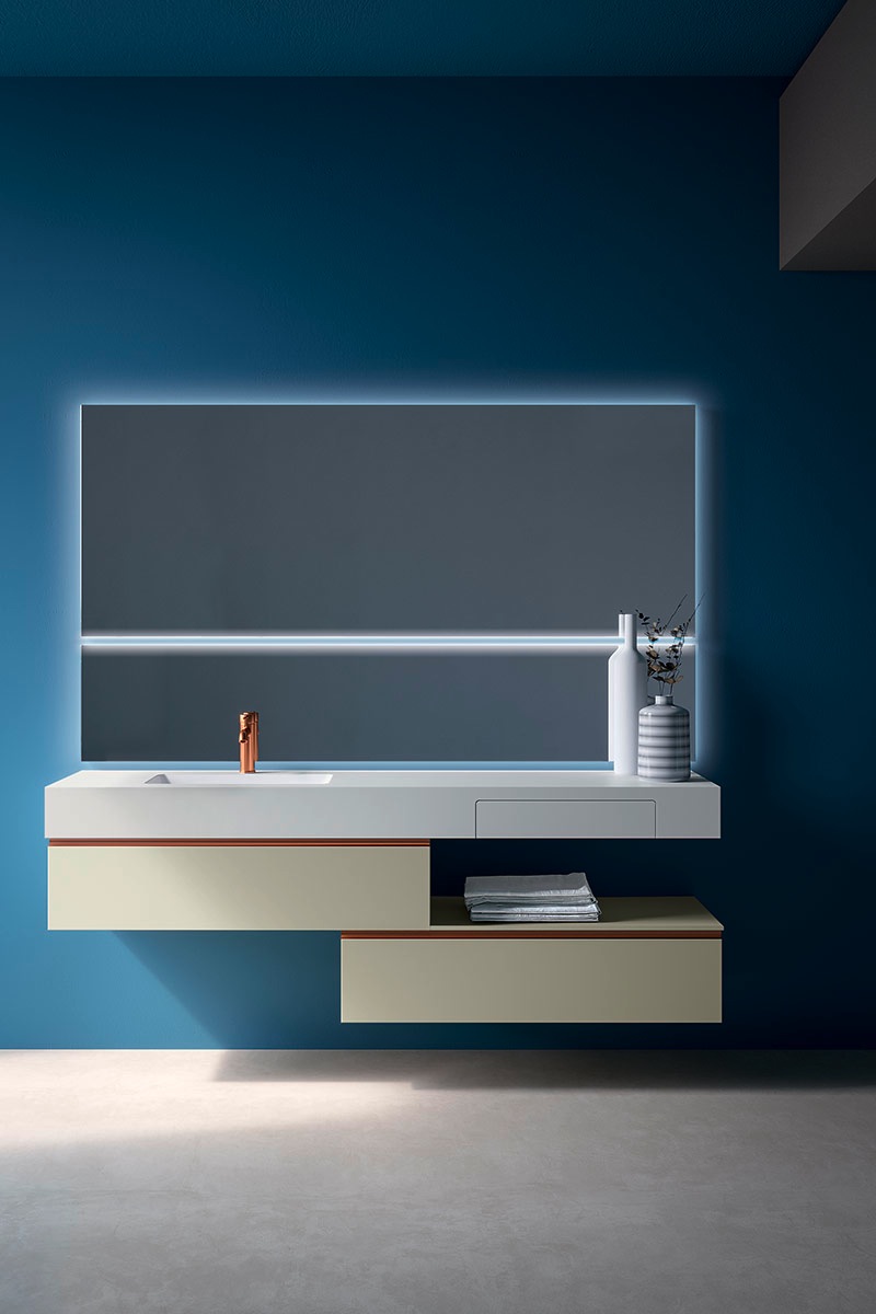 La collezione Aria è un sistema componibile che permette una progettazione su misura in base ad ogni spazio: grazie all’ampia modularità è possibile rispondere alle più diverse funzionalità dell’arredo bagno con soluzioni sempre diverse e di grande impatto visivo. La grande varietà di materiali, finiture e colori, infatti, rende Aria un sistema in grado di adeguarsi a qualsiasi esigenza estetica.