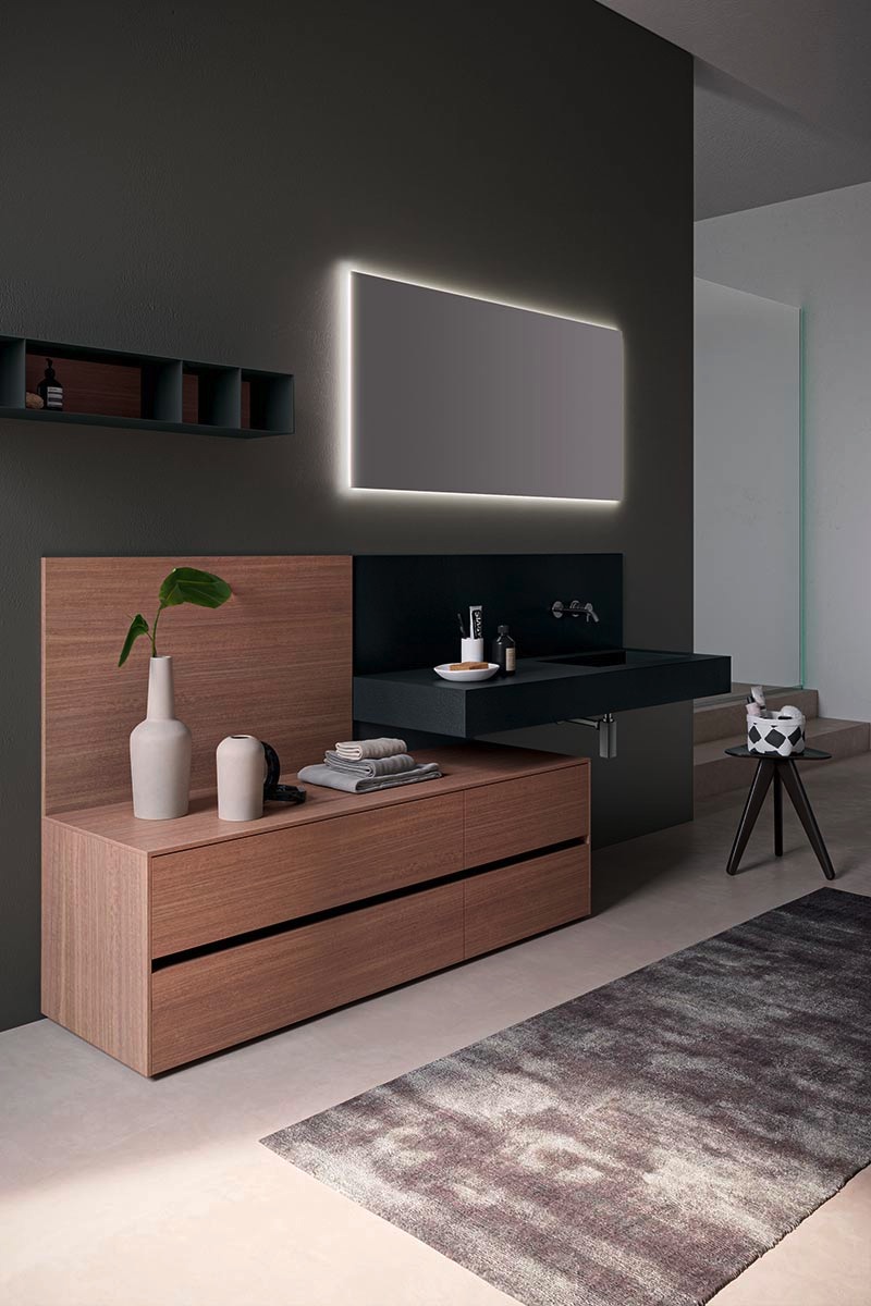 La collezione Aria è un sistema componibile che permette una progettazione su misura in base ad ogni spazio: grazie all’ampia modularità è possibile rispondere alle più diverse funzionalità dell’arredo bagno con soluzioni sempre diverse e di grande impatto visivo. La grande varietà di materiali, finiture e colori, infatti, rende Aria un sistema in grado di adeguarsi a qualsiasi esigenza estetica.