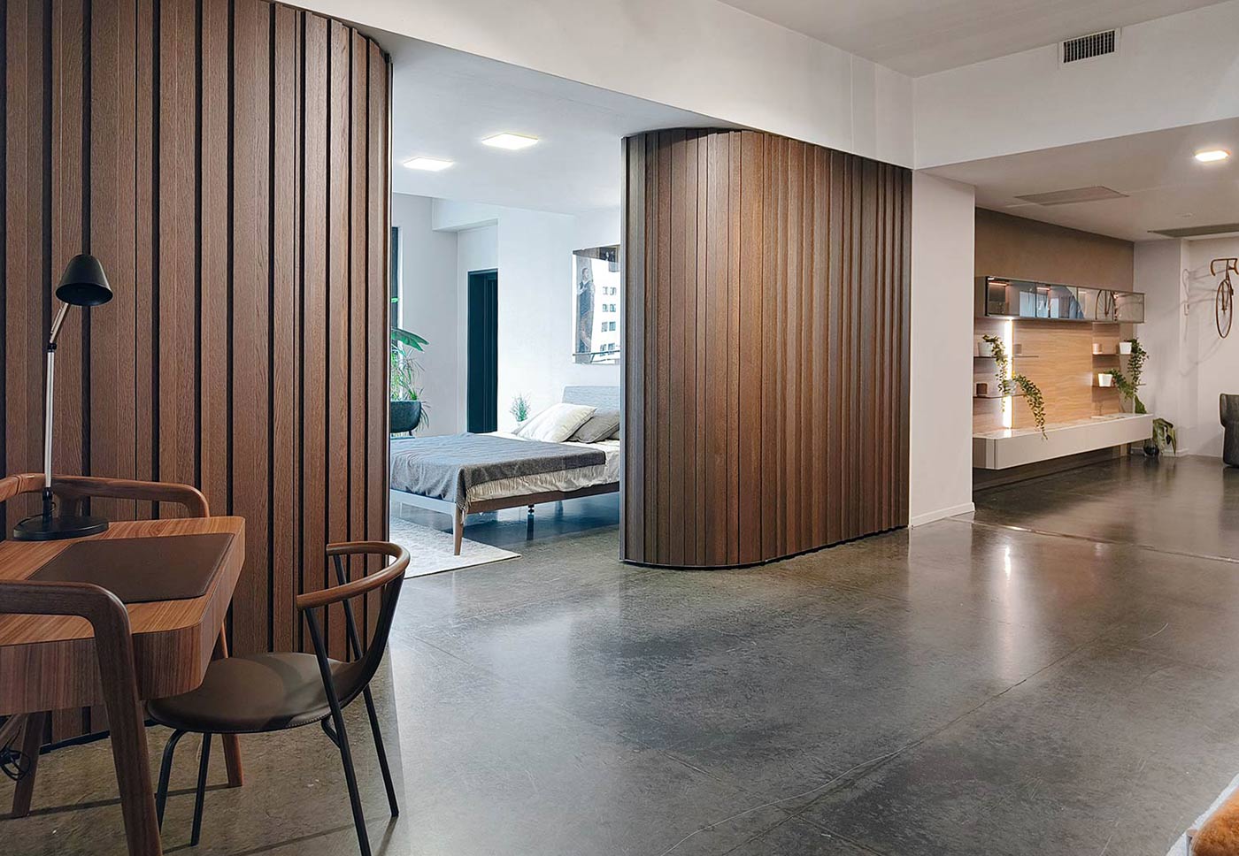 Elegante e funzionale, l’armadio Stave gioca sulle ante dogate in verticale e sull’apertura push-pull senza maniglia, disegnando una boiserie moderna e raffinata. Le sue configurazioni con anche curvate lo rendono ideale per dividere con stile ambienti e camere, offrendo design e praticità in un colpo solo.