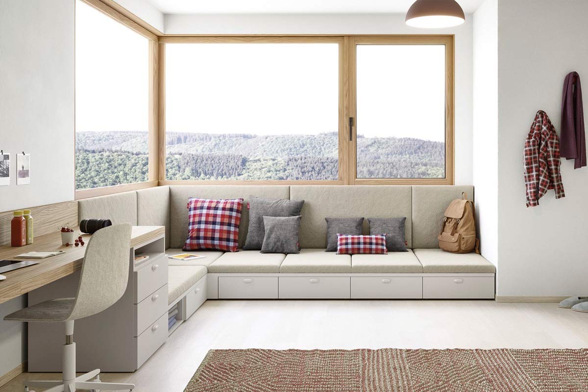 Armadi, librerie, lettini, ponti, cabine, scrivanie, basi e contenitori sono sempre disponibili in tante varianti diverse per adattarsi a qualsiasi architettura. In questo modo è possibile realizzare una stanza completamente su misura.