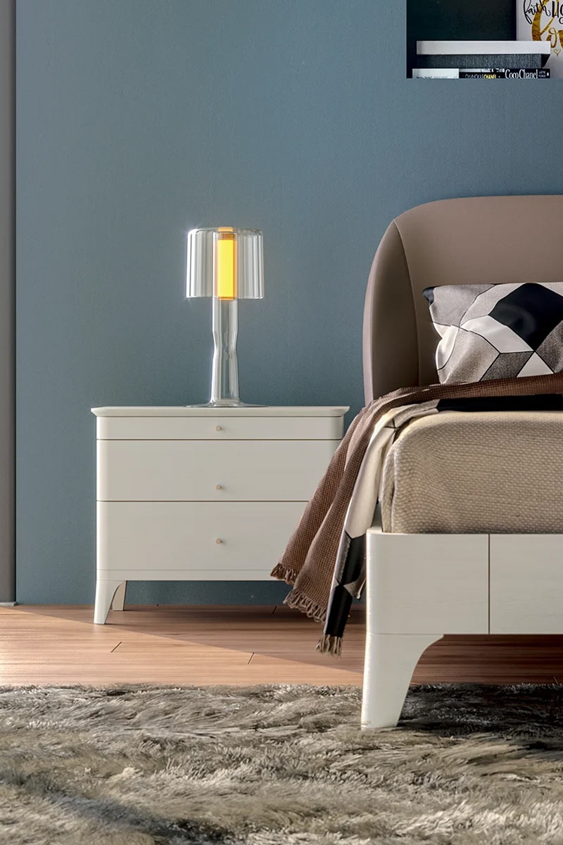 Il comodino Rosa Colette, con la sua struttura dalle linee morbide che gli conferiscono un’aura di delicatezza, conferisce eleganza e raffinatezza alla zona notte. È dotato di tre cassetti di diverse dimensioni, progettati per offrire un pratico spazio di archiviazione, mantenendo al contempo uno stile impeccabile.