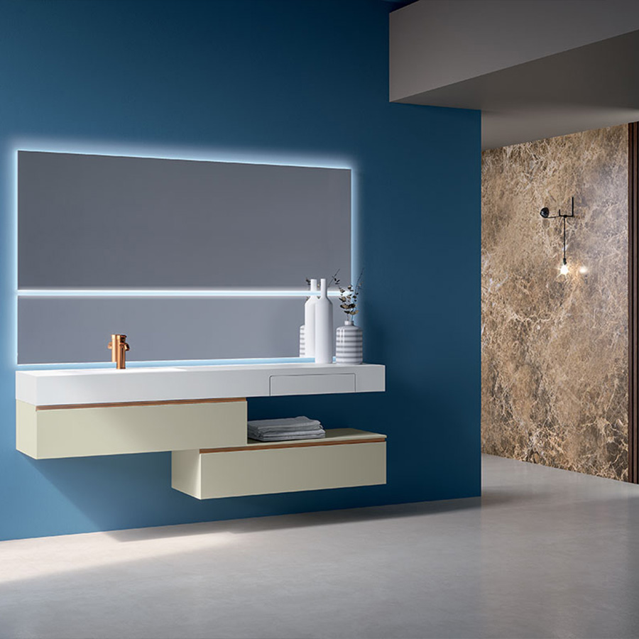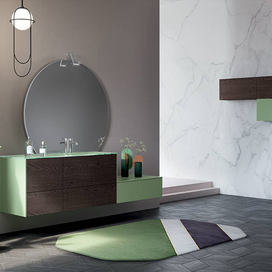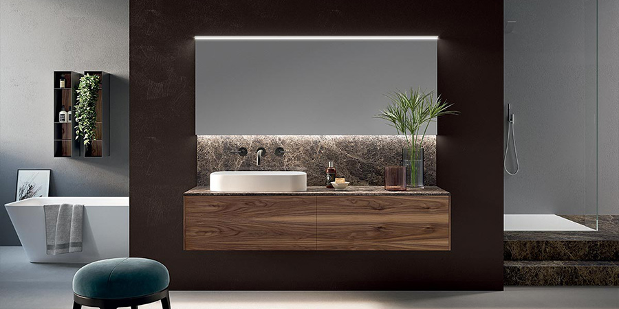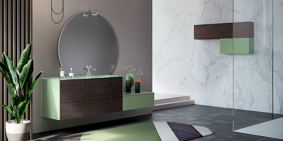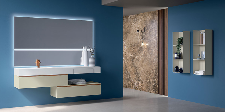 Uno dei protagonisti di questo approccio è l’arredo sospeso. Mobili contenitori, lavabi o mensole: le strutture a parete liberano il pavimento, aumentando la percezione dello spazio.
