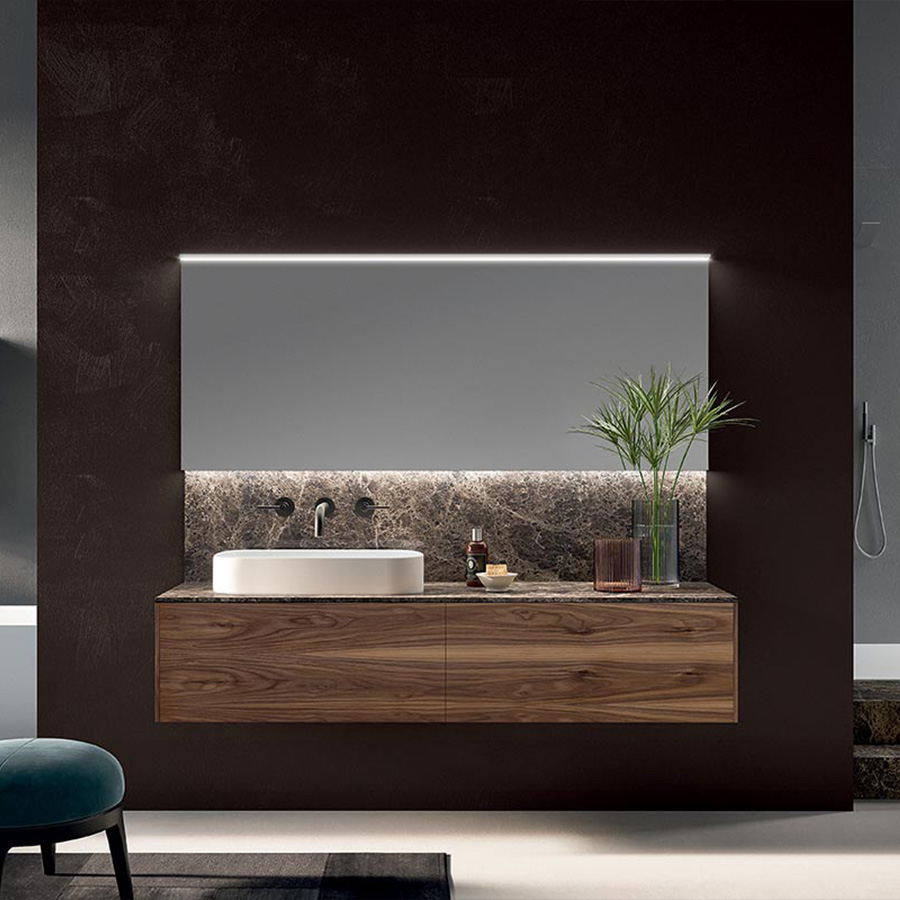 L’illuminazione gioca un ruolo chiave in questa nuova idea di bagno. Non solo per la funzionalità, ma anche per come riesce a modellare i volumi e definire gli spazi. Le luci LED vengono integrate nei pensili, dietro gli specchi o sotto i lavabi sospesi, creando un effetto luminoso diffuso e discreto.