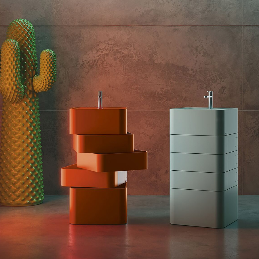 Un esempio perfetto in questa direzione è Twist, il lavabo in vetro soffiato disponibile in diverse tonalità. Grazie alla sua trasparenza e alle diverse nuance disponibili, Twist porta nel bagno una nota di colore raffinata, senza rompere l’equilibrio del minimalismo.