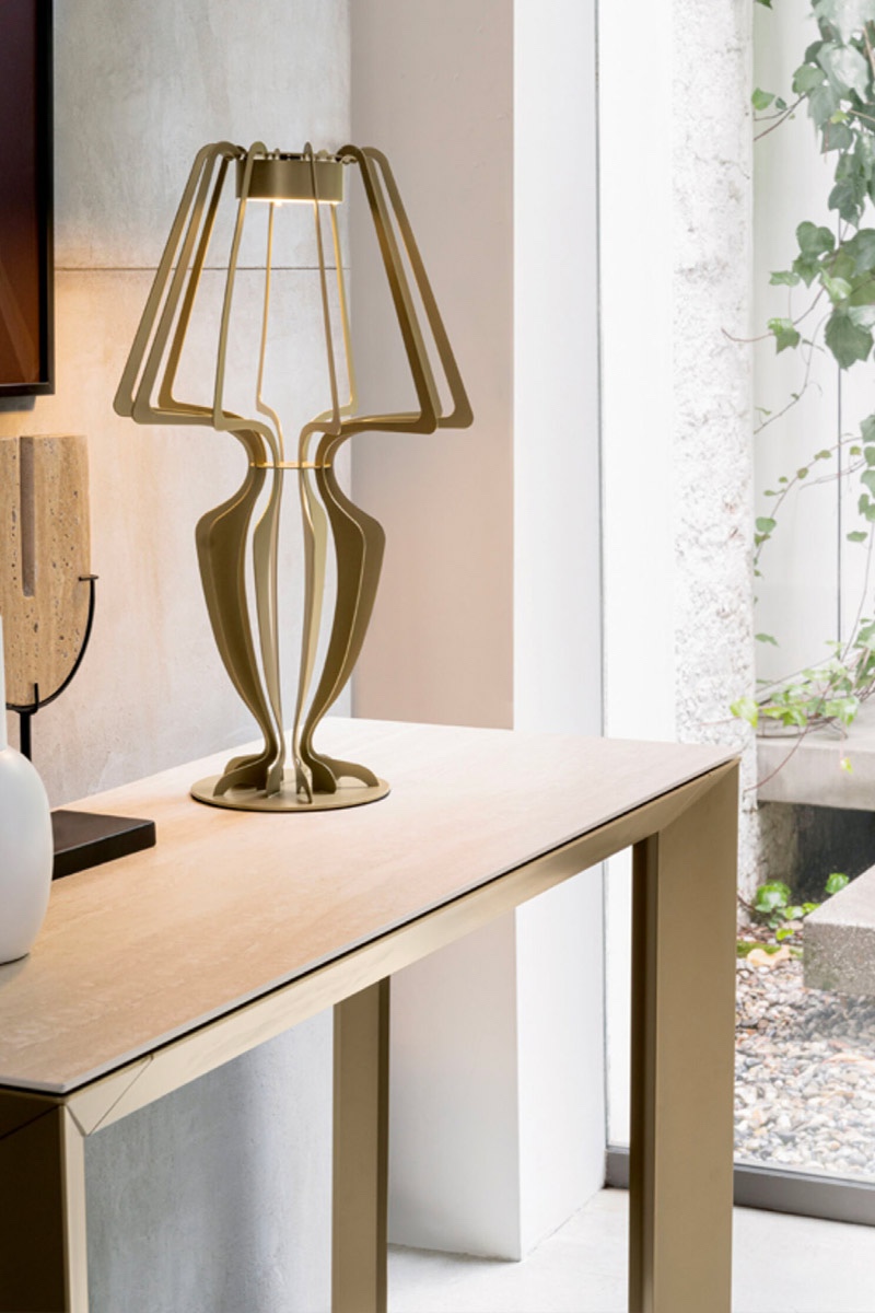 La consolle allungabile Manhattan firmata Riflessi denota un minimalismo “soft” e un’eleganza sobria ma accogliente. Disponibile nella versione allungabile o fissa, è caratterizzata da forme essenziali impreziosite da finiture sofisticate.