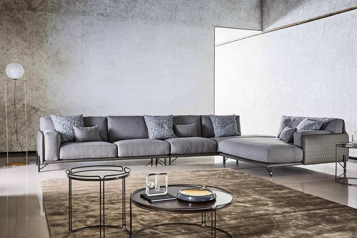 Kris è un divano moderno imbottito dall’estetica intramontabile, impreziosita nella nuova versione da una trapuntatura e da un nuovo piedino a doppio tubo.