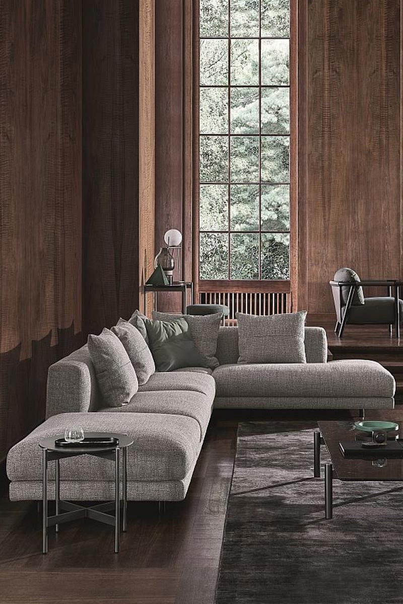 Volumi tessili morbidi ed essenziali, proporzioni ricercate e dettagli sartoriali: Nevylle è un divano elegante ed accogliente in grado di valorizzare la zona living con grande gusto.