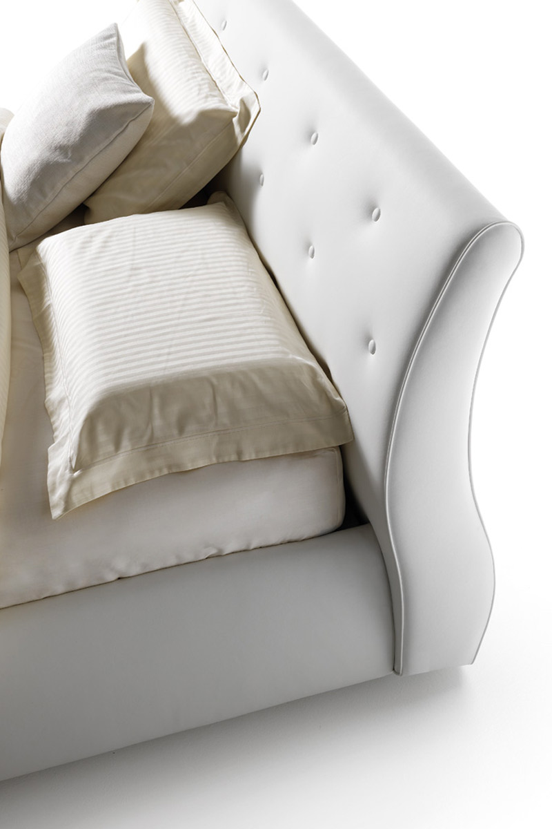 Letto matrimoniale imbottito da forte gusto classico ed elegante. La struttura è in legno stagionato e agglomerato, le imbottiture in poliuretano espanso indeformabile.
