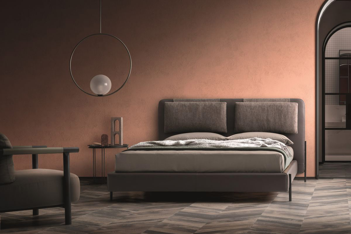 Design minimale e armonioso, massima comodità e grande eleganza: Alar è un modello di letto imbottito composto da un sottile schienale su cui poggiano due cuscini opzionali atti a garantire la massima comodità.