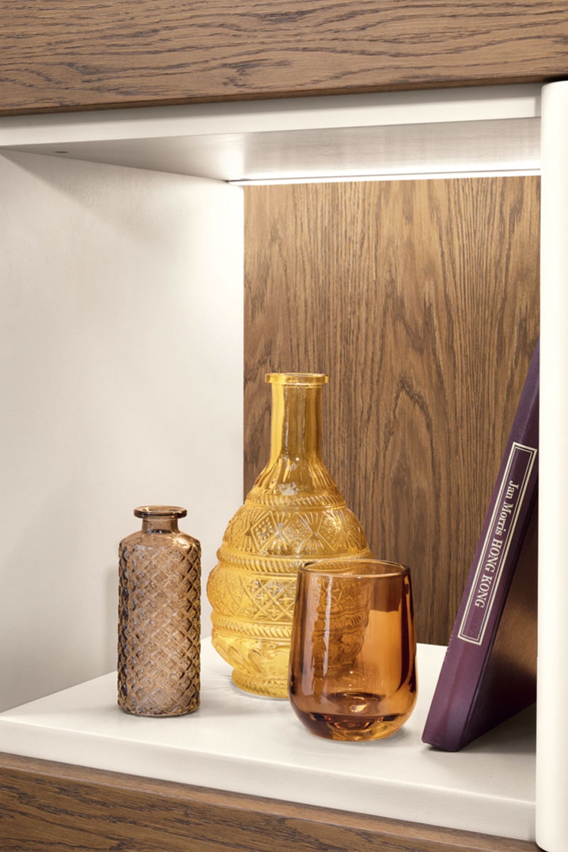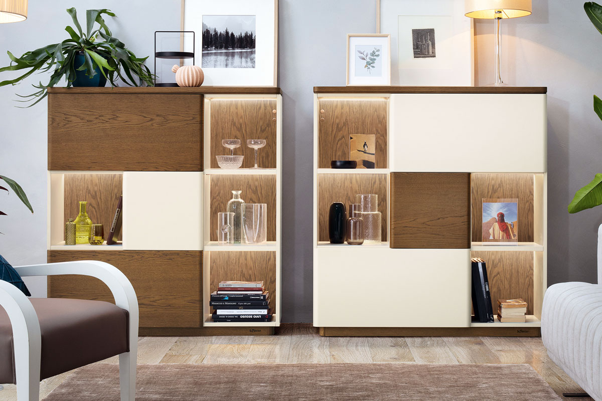 La madia Kama incarna l’eleganza e il design nordico ispirato agli anni ’30, tipico della collezione moderna Fiori di Loto di Le Fablier. Con le sue due ante in essenza e quattro cubotti con LED, la madia moderna Kama si presenta come un’opzione versatile e sofisticata per arricchire il proprio spazio living.