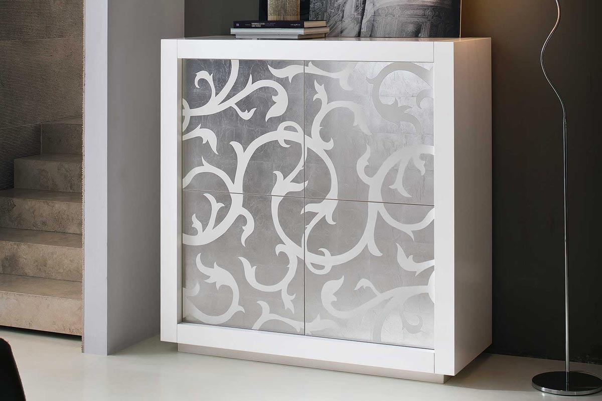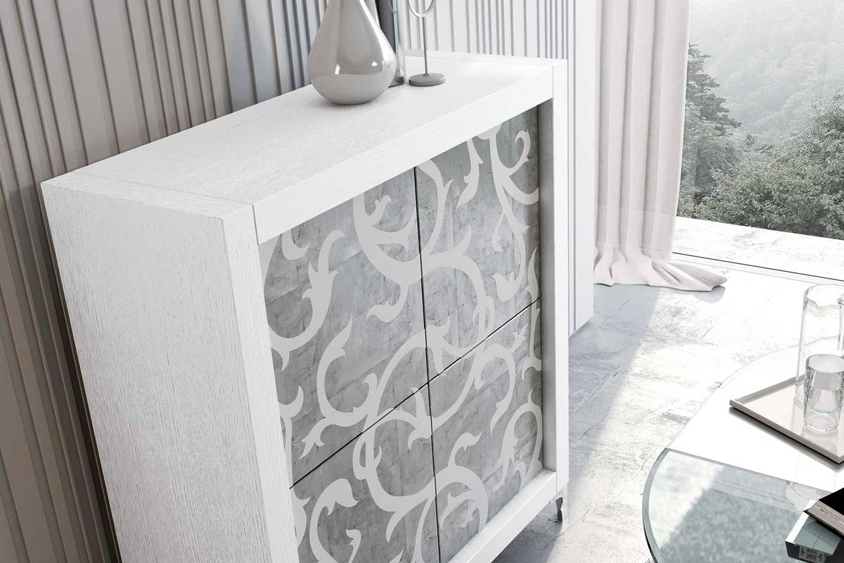 Picasso è una madia moderna firmata Riflessi con scocca in rovere poro aperto e ante Intarsio in foglia. Ripiani interni in cristallo. La madia Picasso è disponibile con 6 tipologie di ante, ognuna delle quali con finiture uniche e dal grande impatto visivo: anta Fiocco, Simple, Mito, Tibetana, Venere, Ceramica, Gocce.