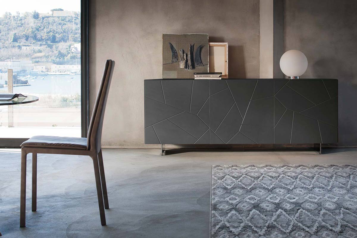 Segno è una collezione di madie firmata Riflessi decisamente espressiva, dal design rigoroso, ma connotata da un segno grafico netto e distintivo per leggerezza ed eleganza. Segno è una credenza in legno con superficie a vista incisa e raccordata. Apertura push-pull.