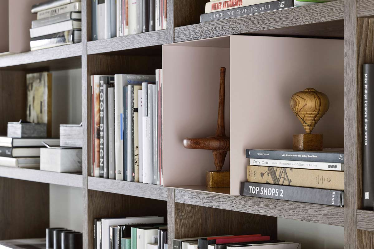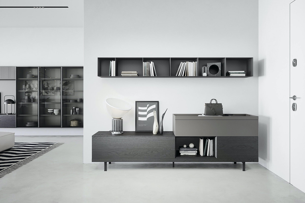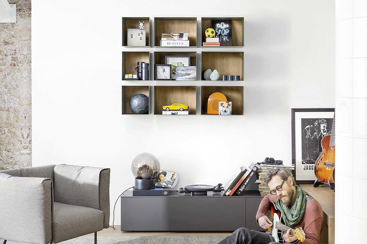 Hub può arredare con semplicità sia una zona living che una zona studio: i box, infatti, possono essere inseriti all’interno di una struttura soggiorno, come ad esempio nel sistema Wall 30, oppure possono creare una soluzione contenitiva pratica e funzionale in ufficio o nella zona studio di casa.