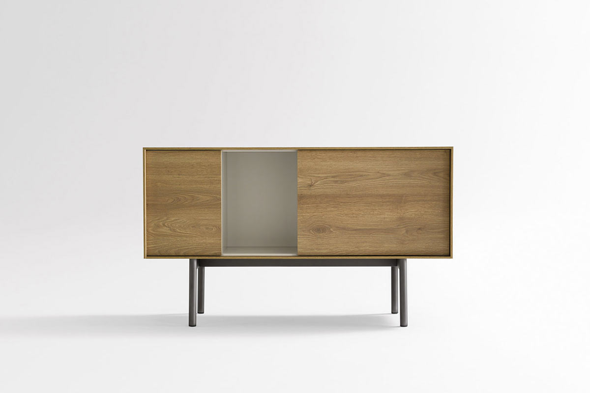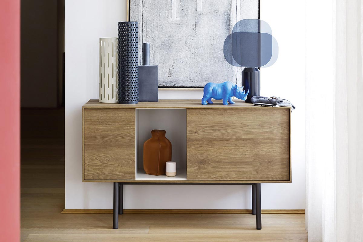 Reverse è una madia NOVAMOBILI moderna in legno con ante battenti e vani a giorno che richiama il gusto degli anni ‘50.