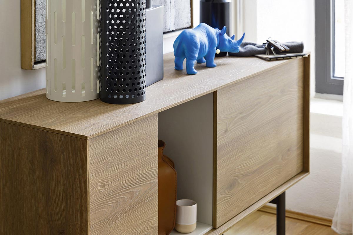 L’alternanza di parti chiuse con elementi a giorno crea simpatici giochi cromatici e innumerevoli varianti che, uniti alle tre misure in cui è possibile realizzare la madia Reverse, rendono questo modello in grado di adattarsi ad ogni tipo di spazio.