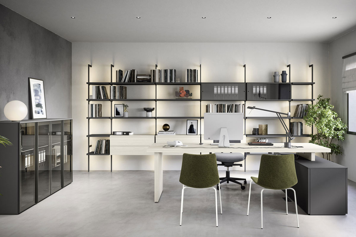 Grazie ai sistemi componibili è possibile trasformare spazi pubblici e privati in ambienti ottimizzati all'insegna del benessere lavorativo. La modularità degli elementi consente di progettare varie soluzioni funzionali e di design sia per ambienti dalle dimensioni generose che per piccole zone studio all'interno delle mure domestiche.