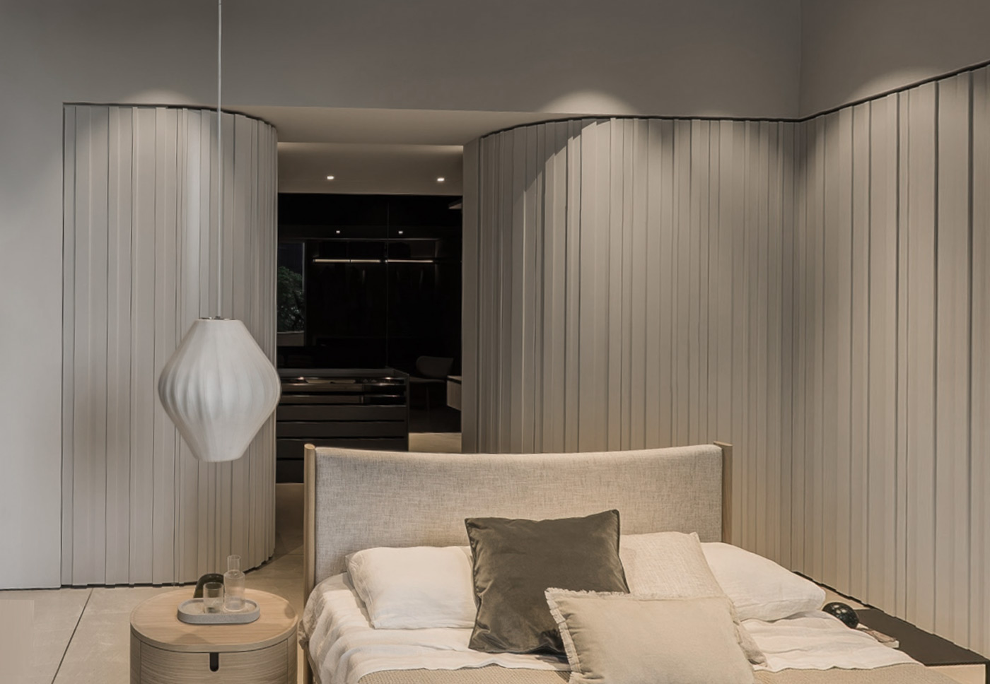 Elegante e funzionale, l’armadio Stave gioca sulle ante dogate in verticale e sull’apertura push-pull senza maniglia, disegnando una boiserie moderna e raffinata. Le sue configurazioni con anche curvate lo rendono ideale per dividere con stile ambienti e camere, offrendo design e praticità in un colpo solo.