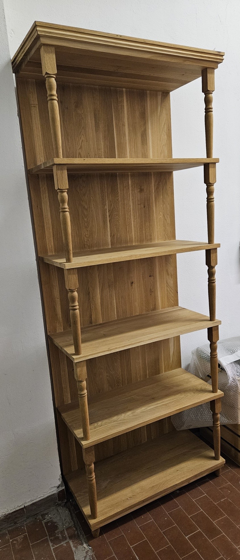 Scaffale in legno tornito.
