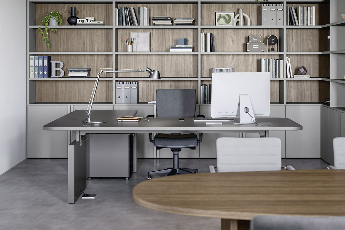 Grazie ai sistemi componibili è possibile progettare un'ampia gamma di scrivanie per l'ufficio o per la zona studio di casa. Ogni modello è personalizzabile con vari accessori in grado di rispondere alle diverse esigenze, come divisori in pannello o imbottiti fonoassorbenti, divisori casellario, basi con portaoggetti, schedario estraibile e alzata.