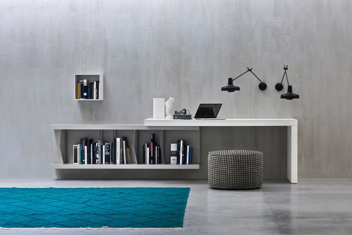 Free-standing oppure abbinata in appoggio ad un contenitore, la scrivania Elle NOVAMOBILI ha un piano d’appoggio con uno spessore che le conferisce un aspetto caratteristico. La scrivania Elle è progettabile in diversi materiali e dimensioni: in questo modo è possibile creare una zona studio funzionale e di design anche all’interno dell’ambiente domestico, sia nella zona giorno che nella zona notte.