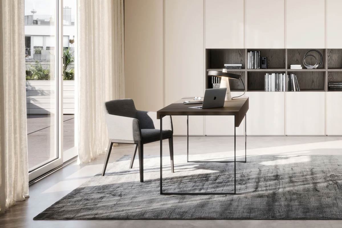 Fold è una scrivania NOVAMOBILI da ufficio dal design elegante che non passa inosservato: il piano piegato sia sul lato frontale sia su quello posteriore ne impreziosisce anche il profilo laterale. Le gambe in metallo, disponibili in tutti i colori laccati, rendono Fold una soluzione perfetta per arredare la zona studio anche all’interno della propria casa. Disponibile in due misure.