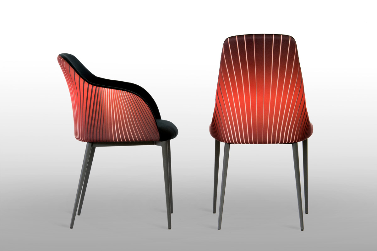 Seduta e schienale ergonomici possono essere rivestiti in pelle, ecopelle, raso, velluto e vari tipi di tessuto nelle colorazioni disponibili a catalogo.