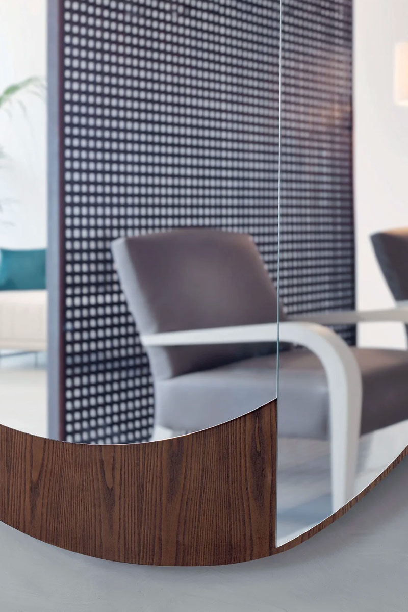 La specchiera Alloro di Le Fablier è un’aggiunta raffinata a qualsiasi ambiente domestico. Caratterizzata da un design elegante e dall’uso sapiente di materiali pregiati, con la sua forma a mezza luna e la sua funzionalità impeccabile Alloro distingue per la sua capacità di arricchire gli spazi con stile e personalità.