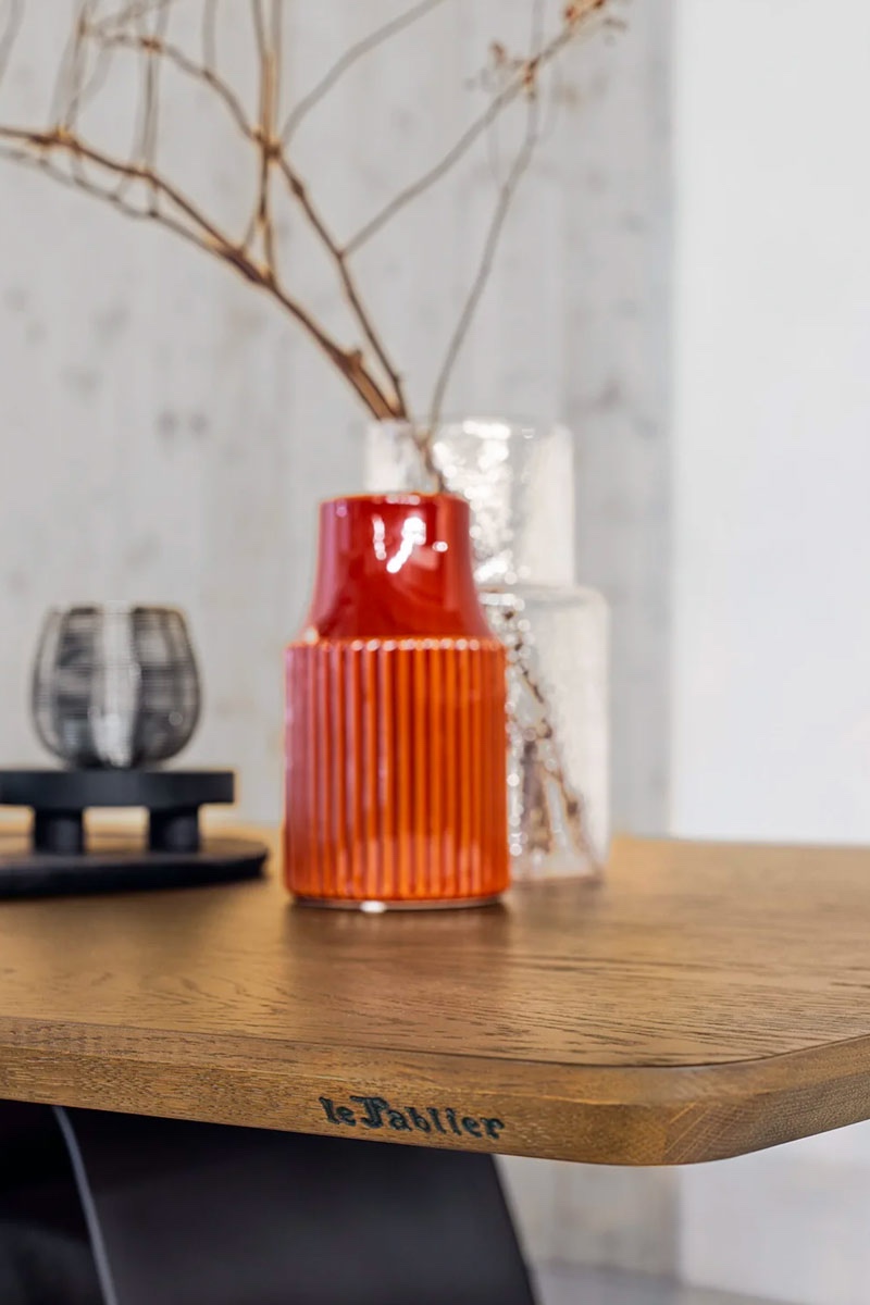 Il tavolo moderno Padma firmato Le Fablier unisce eleganza artigianale e design raffinato. Le sue linee pulite e il suo stile nordico ispirato agli anni ’30, tipico della collezioneFiori di Loto, si esprimomo in una base composta da fogli di lamiera calandrata e saldata dal carattere unico e sofisticato.