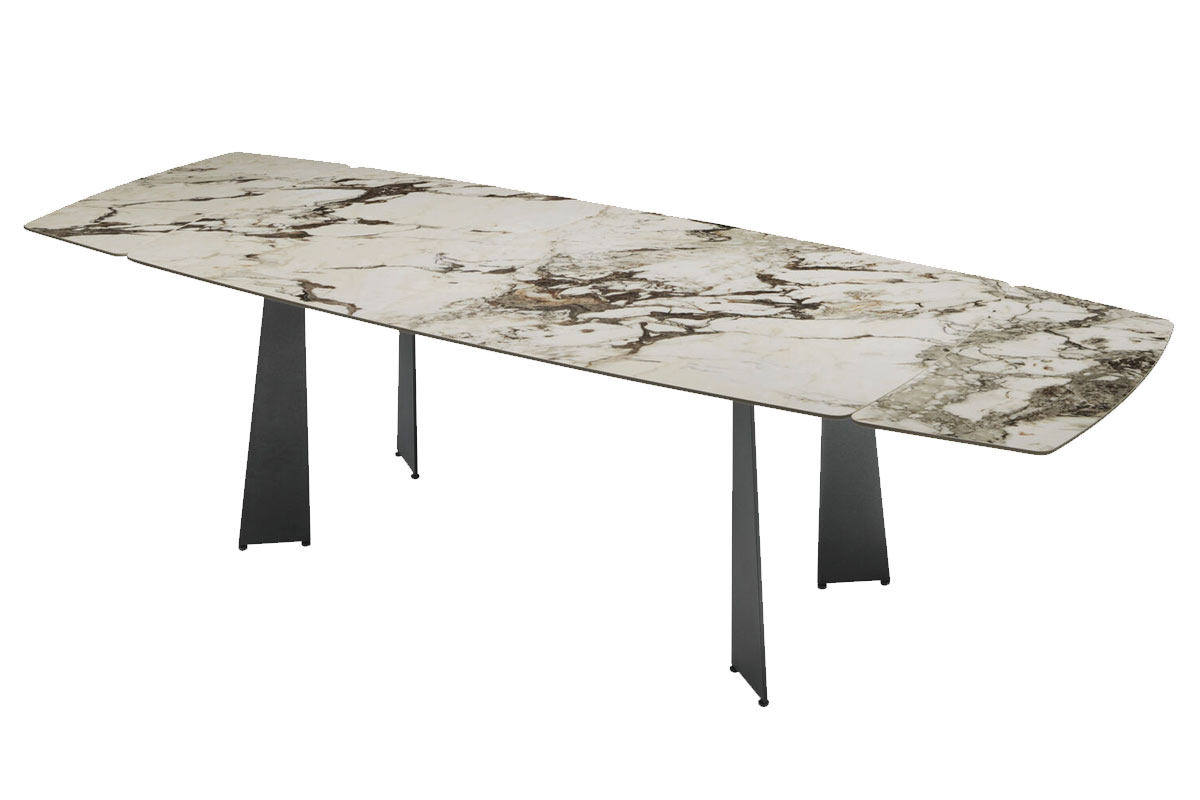 Toledo è un modello di un tavolo moderno dalle caratteristiche uniche: le gambe in metallo pressopiegato giocano con linee e spessori, creando un interessante effetto prospettico. Il ripiano, dallo spessore ridotto, conferisce leggerezza all’insieme ed è altamente personalizzabile con una vasta gamma di materiali e colori. Il suo stile contemporaneo, essenziale e lineare, lo rendono protagonista indiscusso della zona giorno. Disponibile nella versione allungabile o fissa e con ripiano rettangolare o a botte.