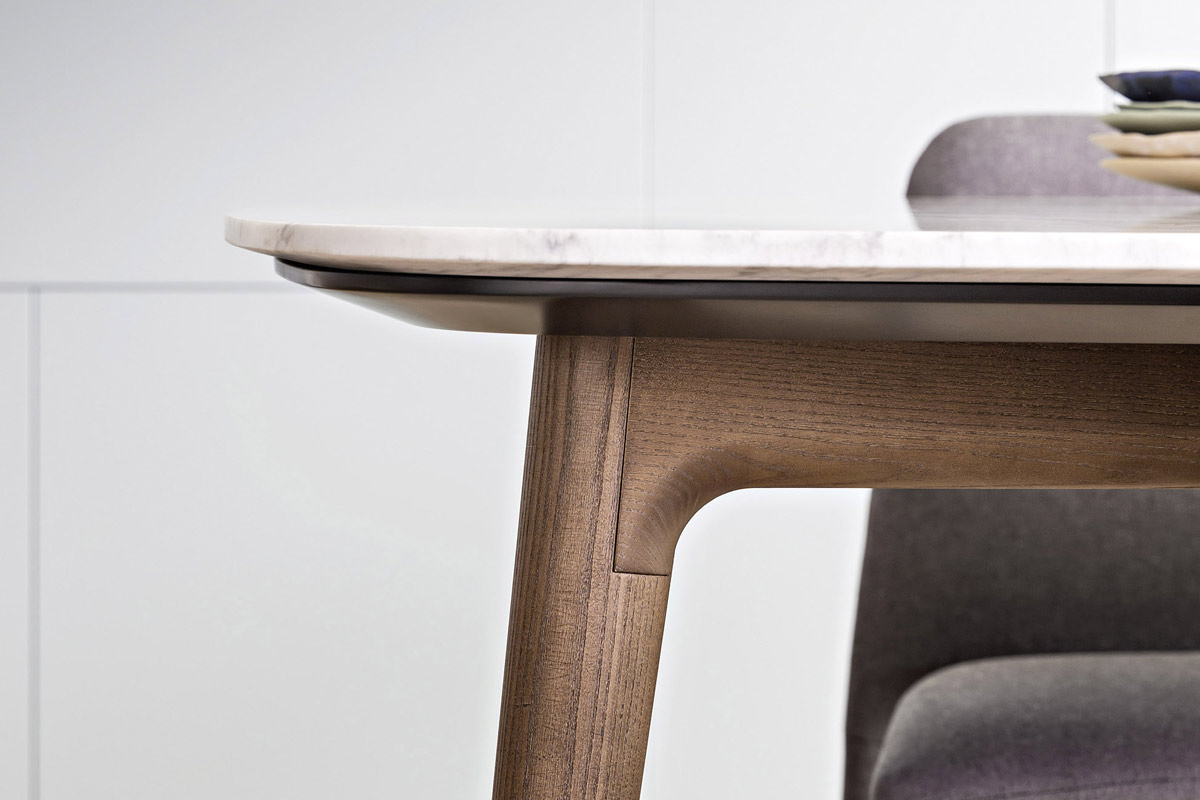 Il tavolo Hanami NOVAMOBILI è caratterizzato da linee fluide e grande attenzione ai dettagli. Le gambe inclinate e rastremate verso il pavimento conferiscono dinamismo e leggerezza.