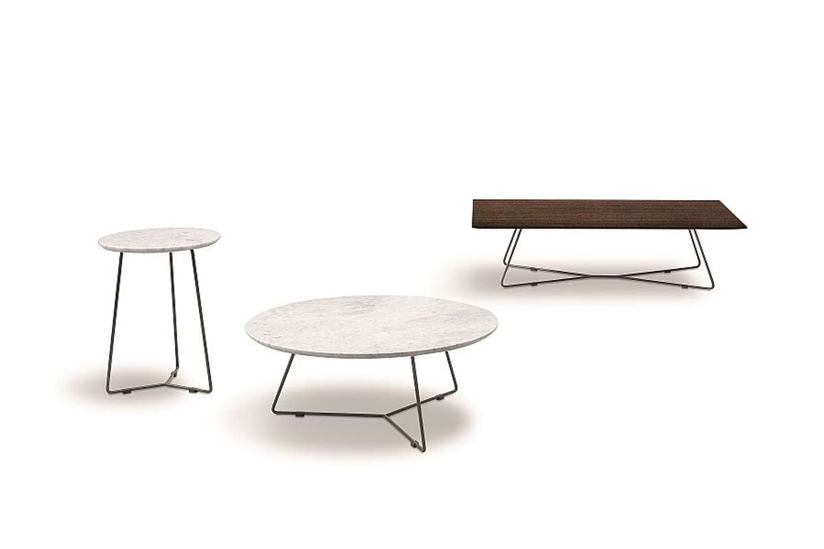 La serie Kevin è composta da tavolini di forme e misure diverse, dal disegno estremamente informale. Questa caratteristica li rende versatili e trasversali, a seconda dell’abbinamento tra i materiali di basamento e ripiano.