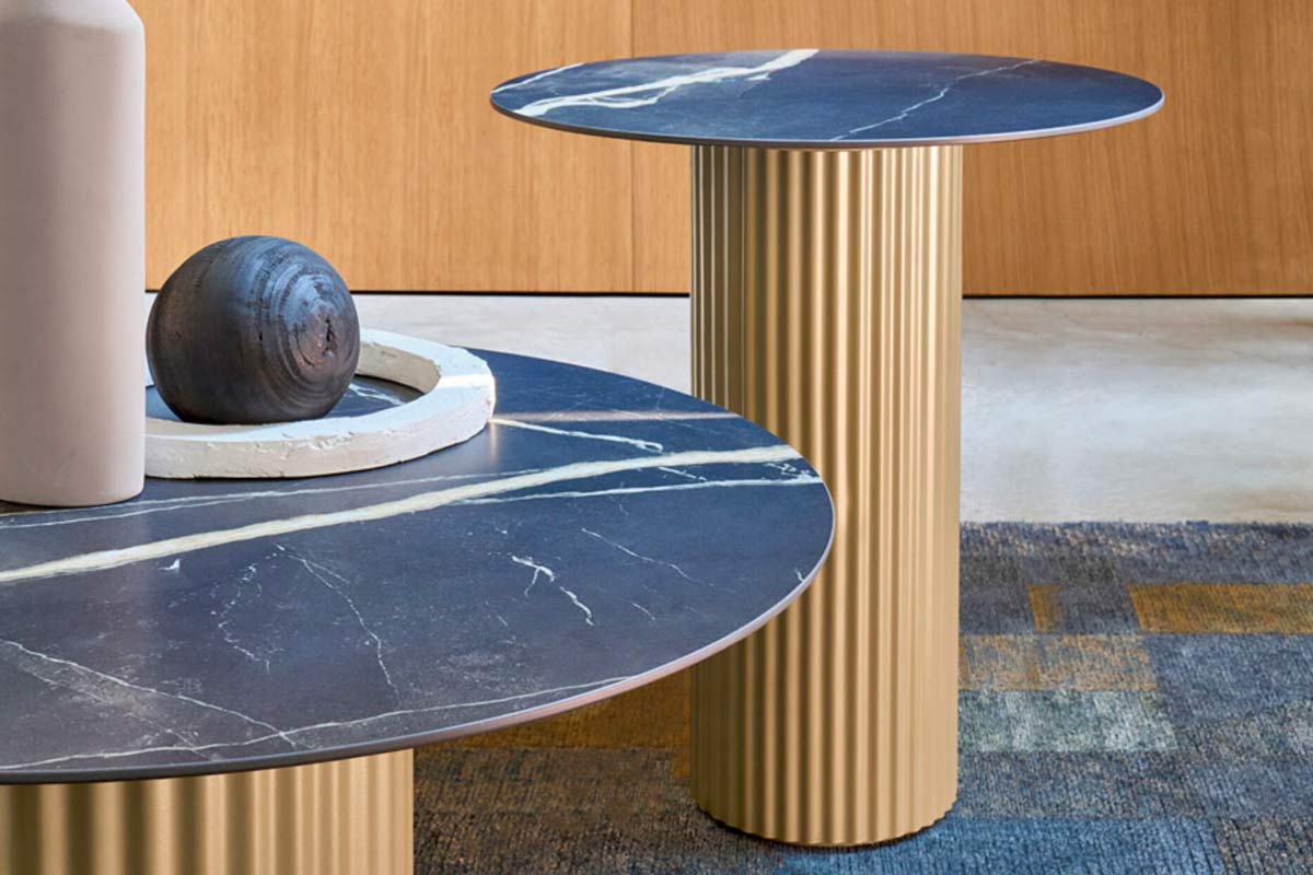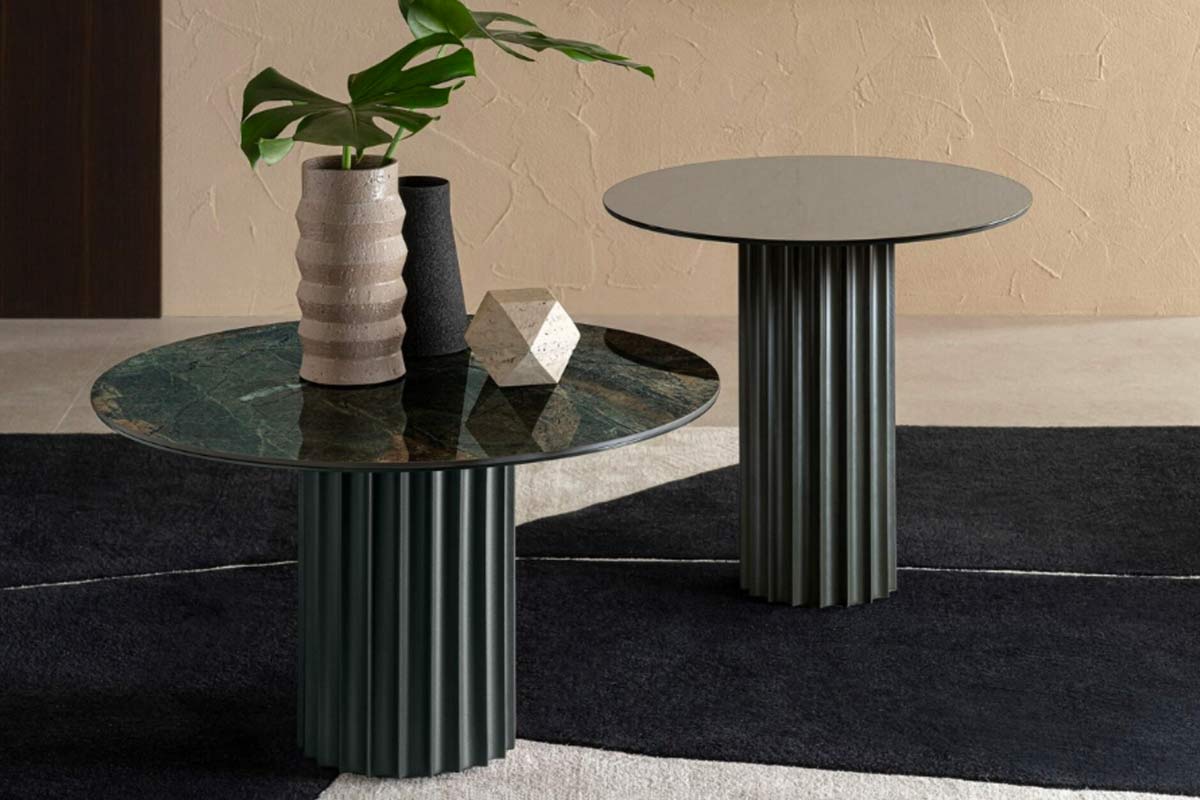 Elegante, sofisticato e imponente: il tavolino da salotto Enea non passa inosservato. Pur nelle dimensioni compatte, conserva il carattere e la forza visiva dell’omonimo tavolo, con una base centrale in metallo con effetto cannettato che cattura subito l’attenzione. Le scanalature profonde e precise creano un gioco di luci e ombre, conferendo al tavolino una presenza dinamica e al contempo solida, capace di impreziosire ogni angolo della stanza.